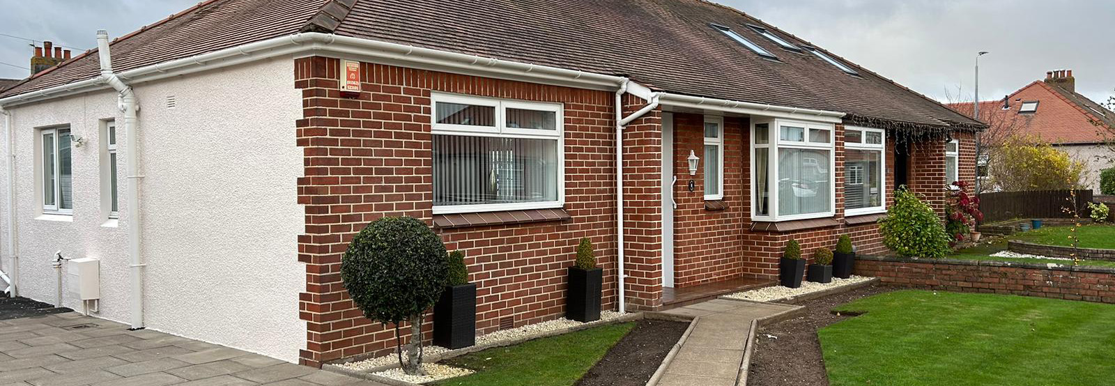 Homeshield added our External Thermal Wall Coating System to this semi-detached property in Prestwick, Ayrshire, which is energy-efficient wall protection that makes this property walls water-repellent, self-cleaning, and breathable. This helps to improve the thermal conductivity and installation of your property. You can also pick a colour from the five available colours: Eggshell, Cream, Rustic Beige, Polar White and Light Grey.